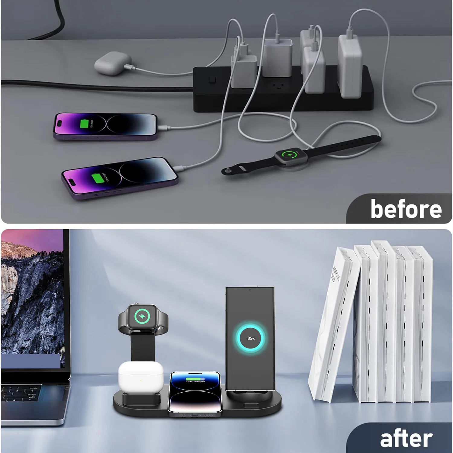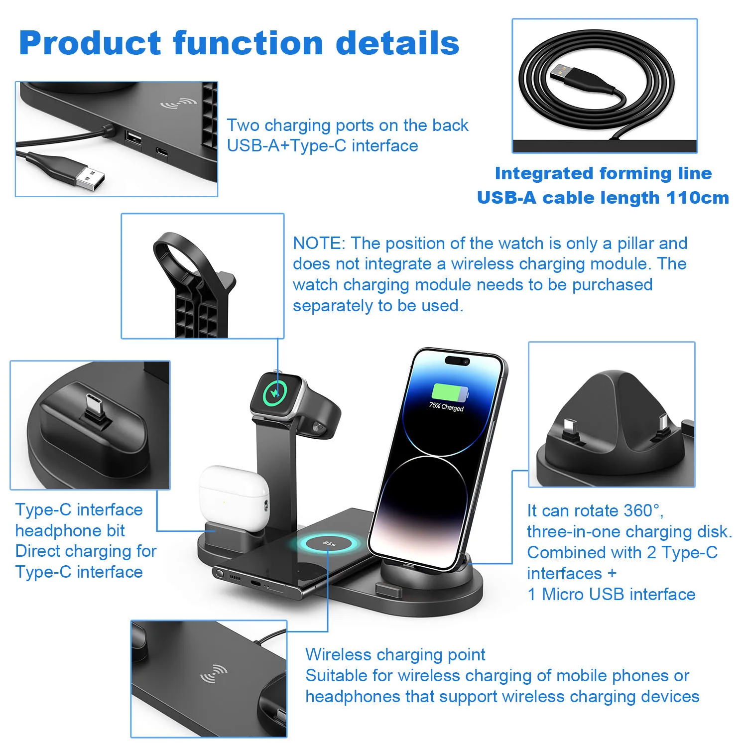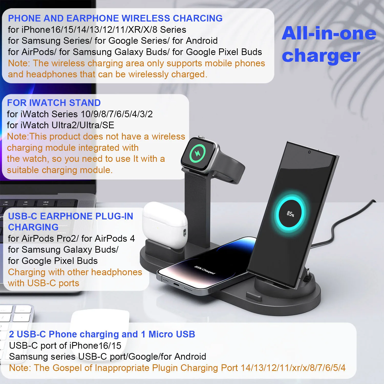 iPhone 16 至 8 系列、三星 Ultra/S25/S24/S23/S22 系列无线充电旋转底座,支持 Apple Watch 10 至 2 代。